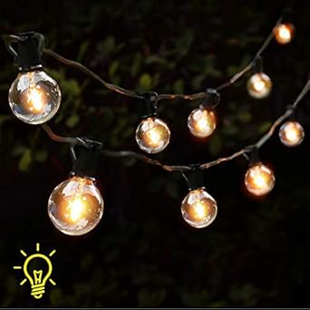 Outdoor Garden String Lights 25ft G40 Patio Outside String Lights Waterproof Indoor Outdoor Festoon Lights For Terrace Xmas Wedding Party Decoration 25 Bulbs 3 Spare Bulbs Amazon Co Uk Kitchen Home